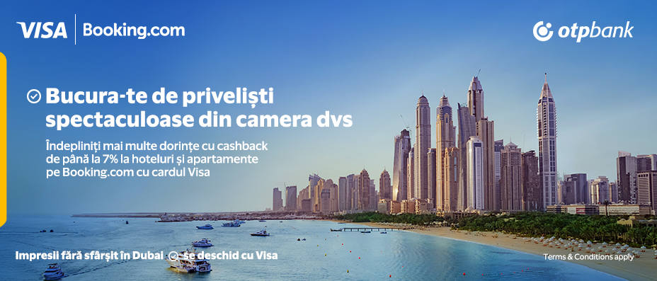 O cameră primitoare sau un apartament luminos creează atmosfera perfectă pentru vacanță — chiar și atunci când călătorești în interes de serviciu. Cu cardul Visa de la OTP Bank, nu doar că poți rezerva o cazare confortabilă pe Booking.com, dar poți primi și cashback de până la 7% din valoarea sejurului, creditat în portofelul tău Booking.com. Recompensele primite rămân în portofel și pot fi utilizate pentru următoarea rezervare.