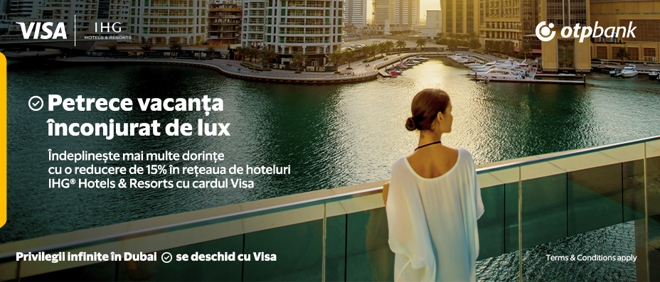 Descoperă lumea călătoriilor fără griji cu Visa și OTP Bank și beneficiază de o reducere de 15% la rezervările în IHG® Hotels & Resorts!